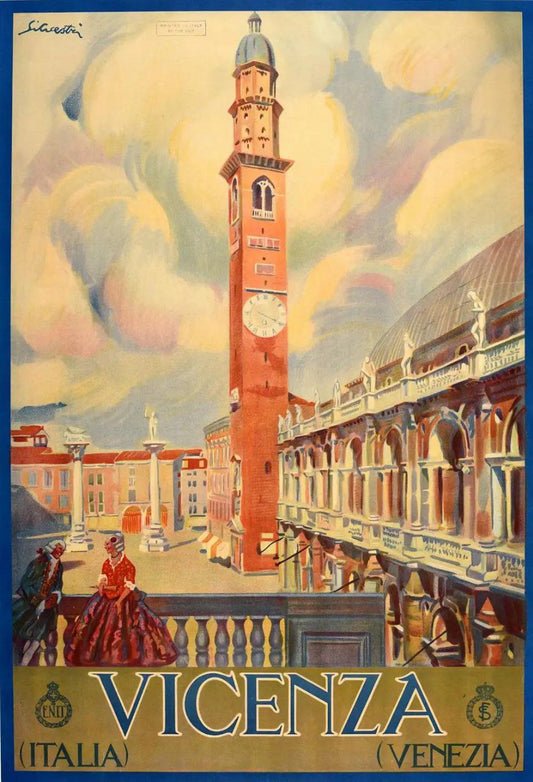 Manifesto originale pubblicitario - Vicenza, basilica Palladiana e la torre Bissara