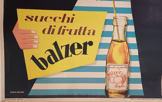 Manifesto originale pubblicitario - Succhi di frutta Balzer Bergamo