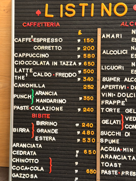 Listino prezzi - Bar Roma