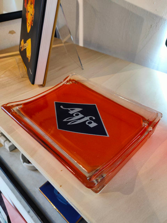 Posacenere pubblicitario Punt e Mes in vetro opalina