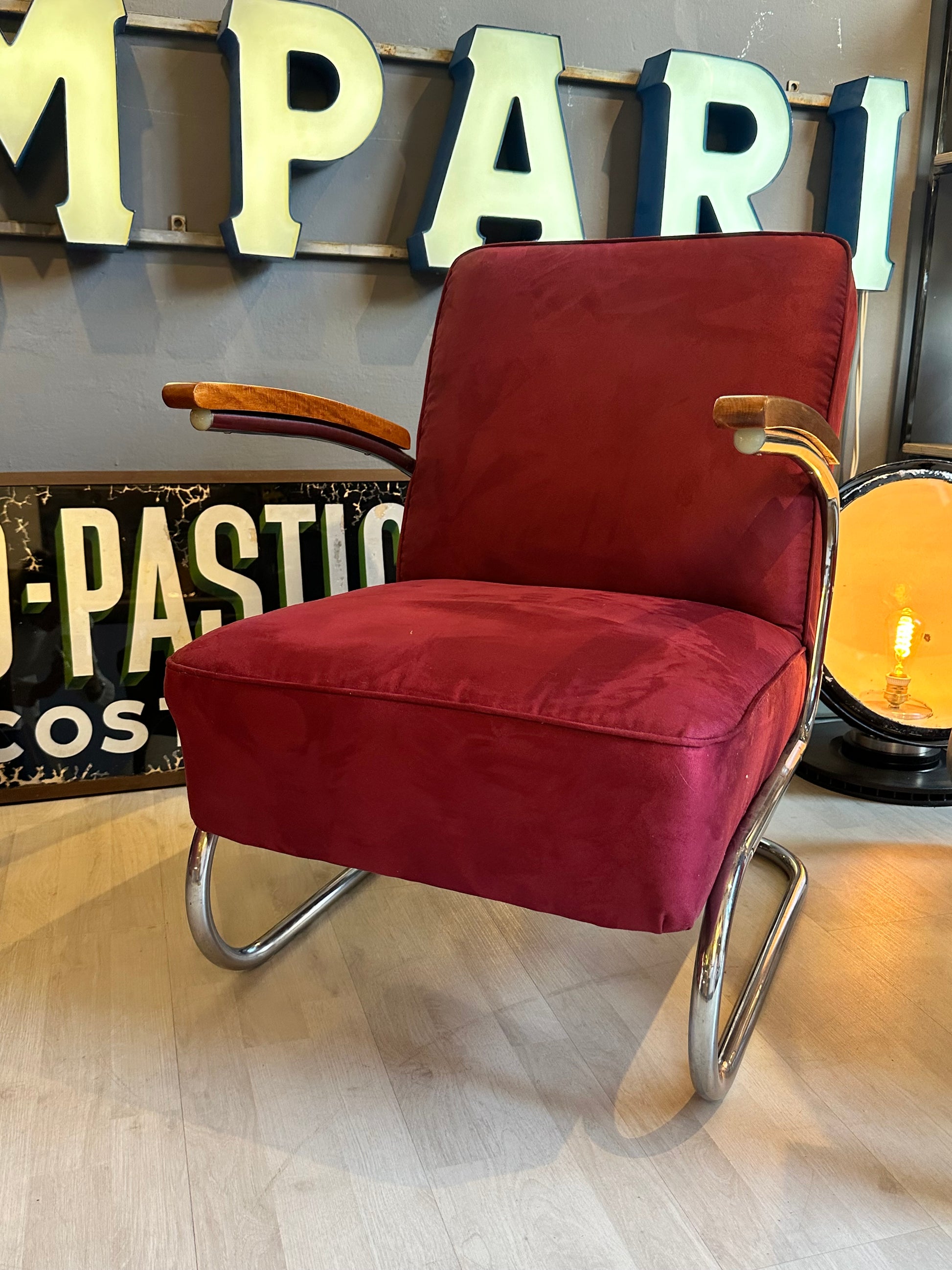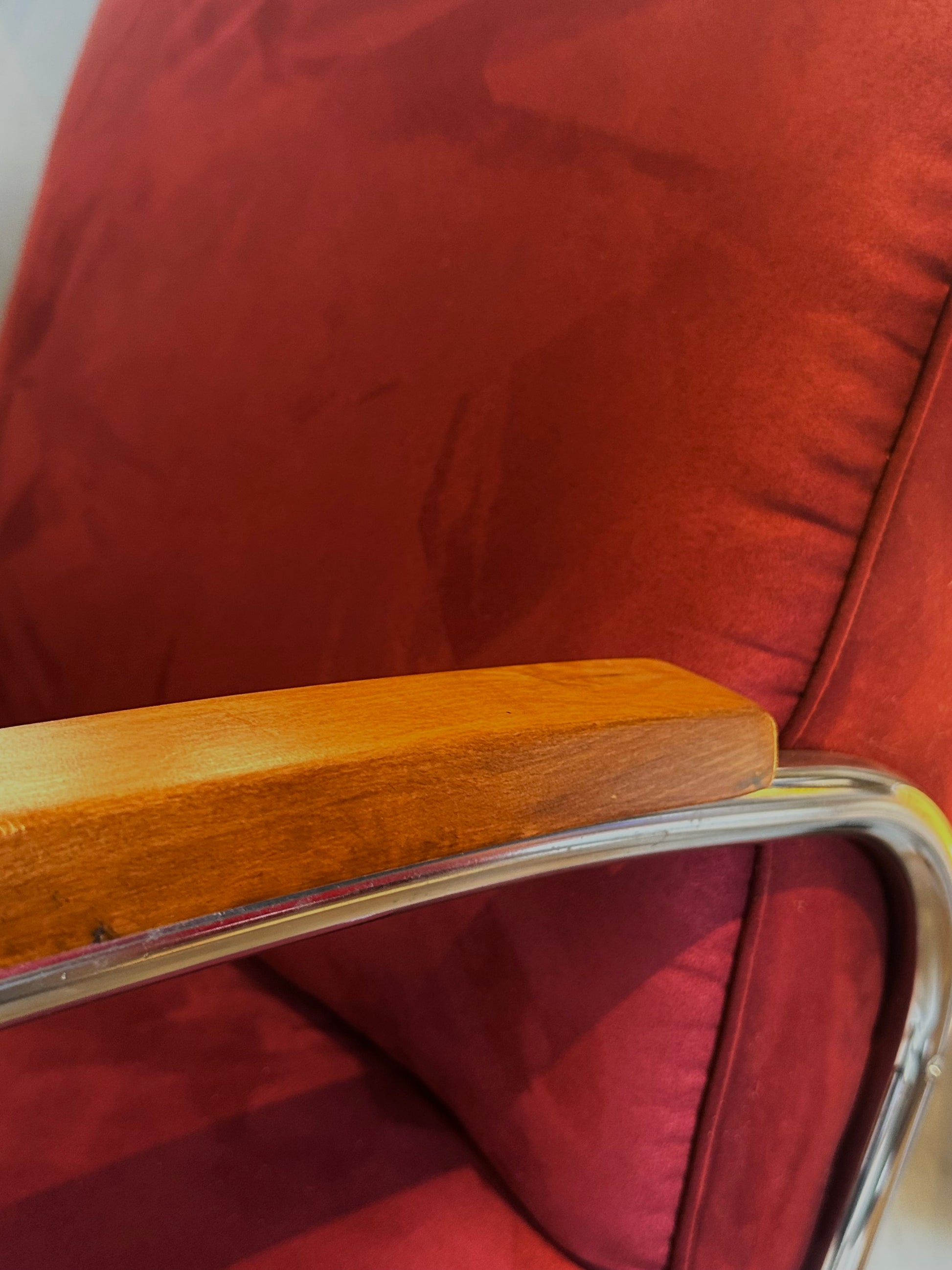 Condizioni: struttura in acciaio con poggia braccie in legno rifoderate in alcantara