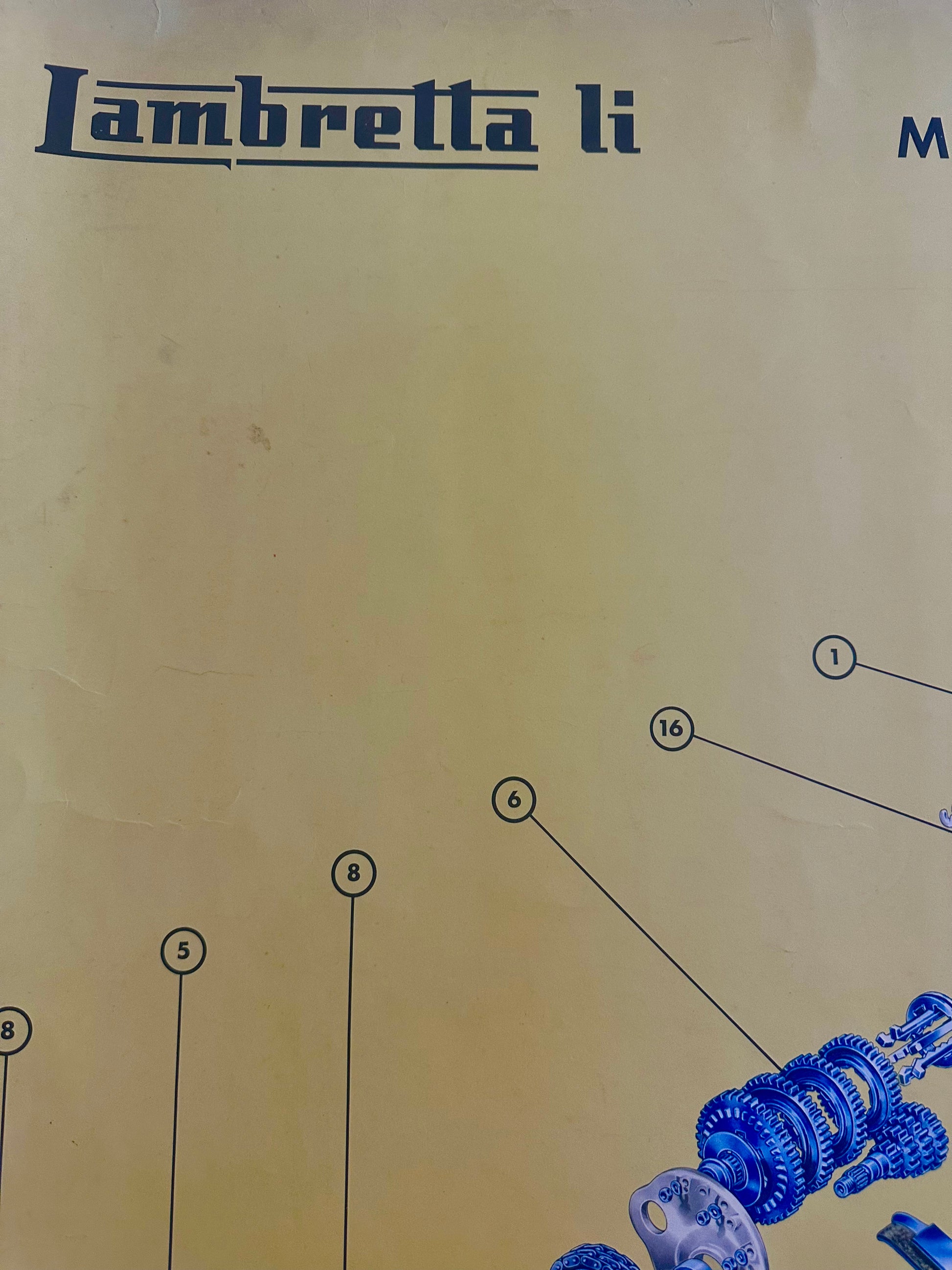Manifesto originale pubblicitario - Spaccato motore Lambretta