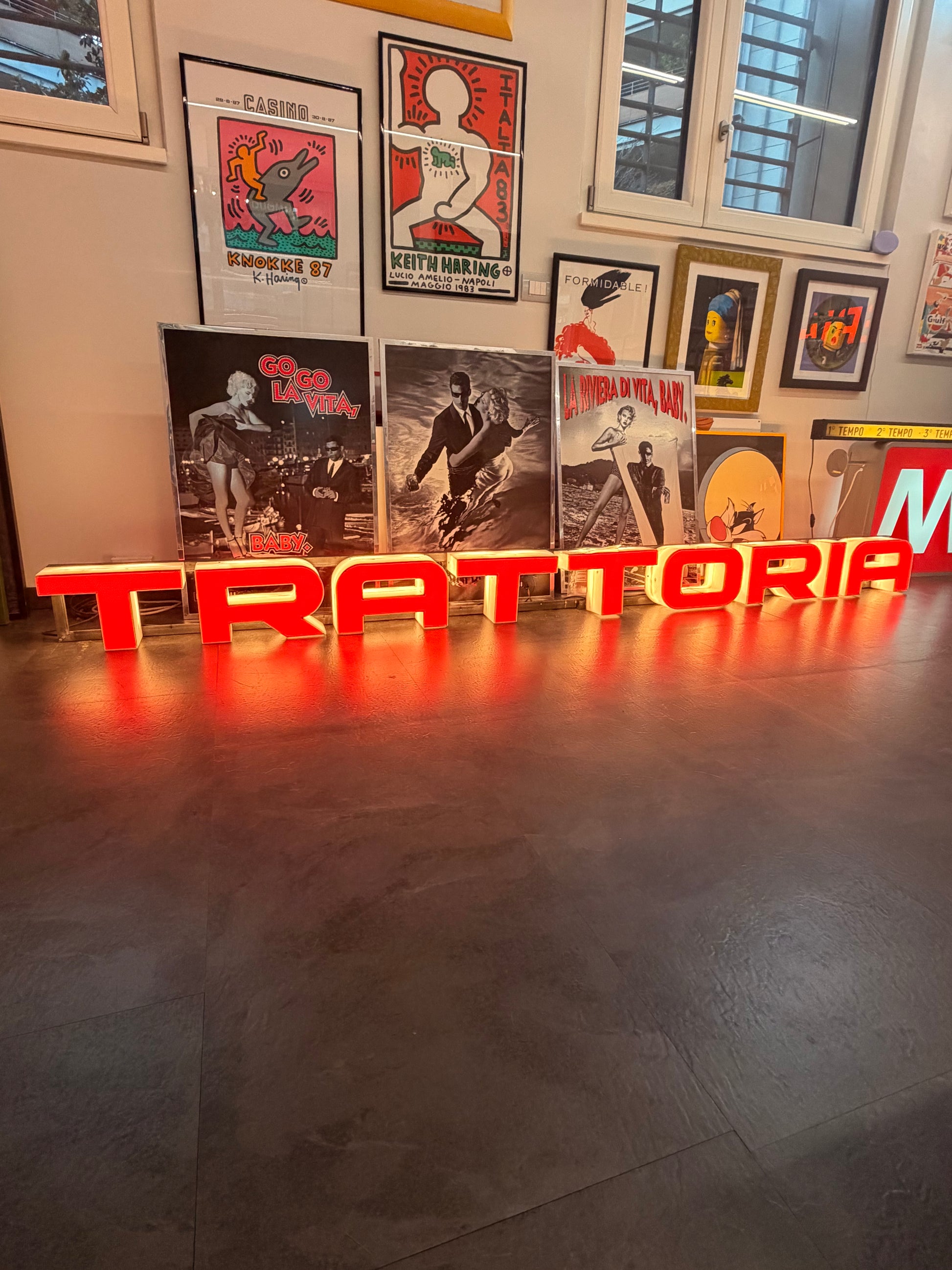 Condizioni: buone, come da foto. Illuminazione neon led. Insegna luminosa in due parti