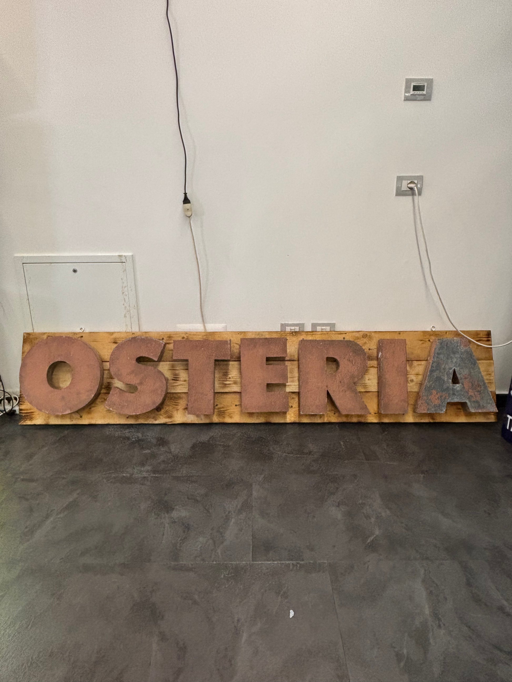 Descrizione : Insegna originale Osteria anni fine anni 70 in metallo con telaio in ferro, patina originale e segni del tempo.