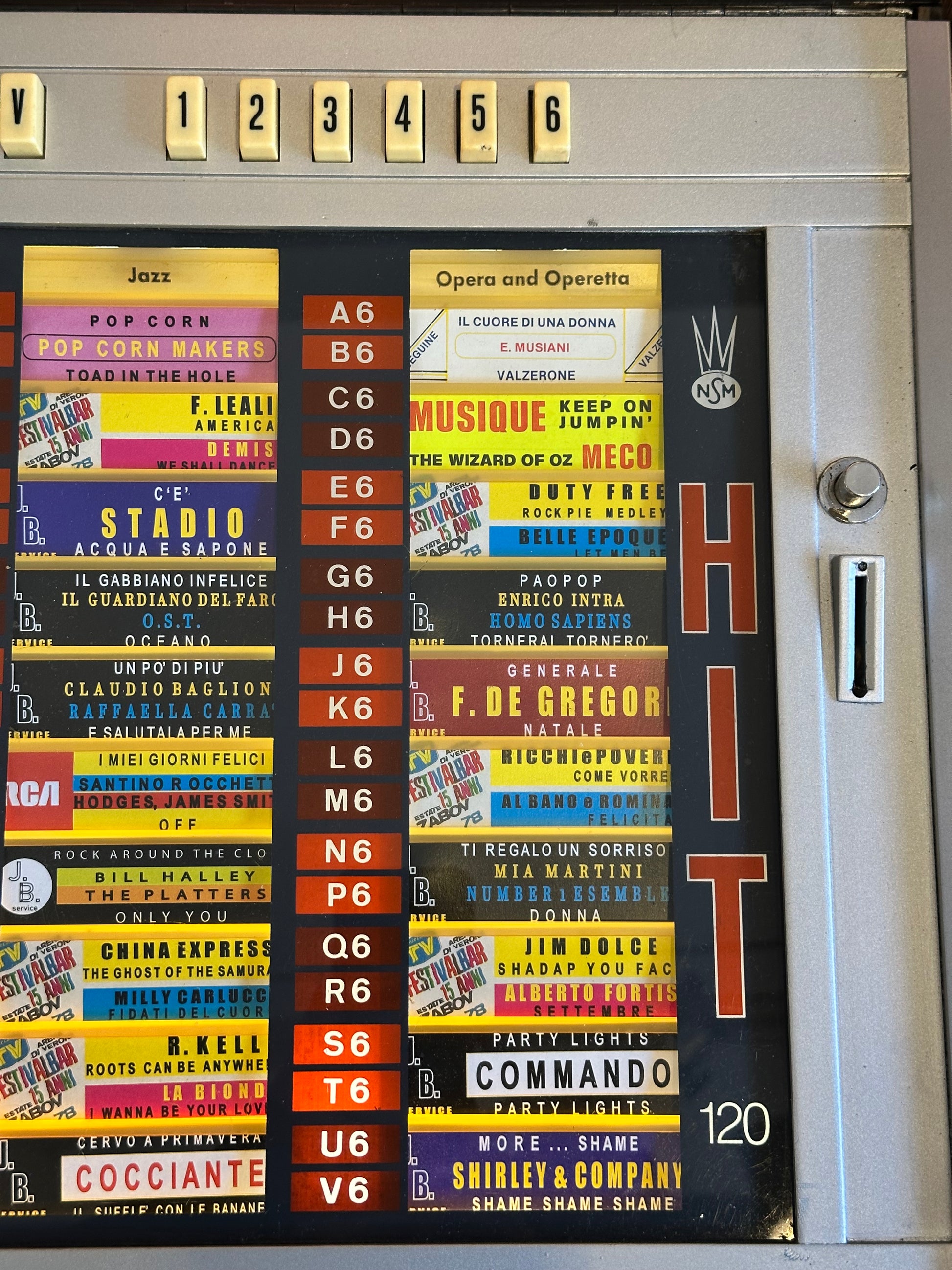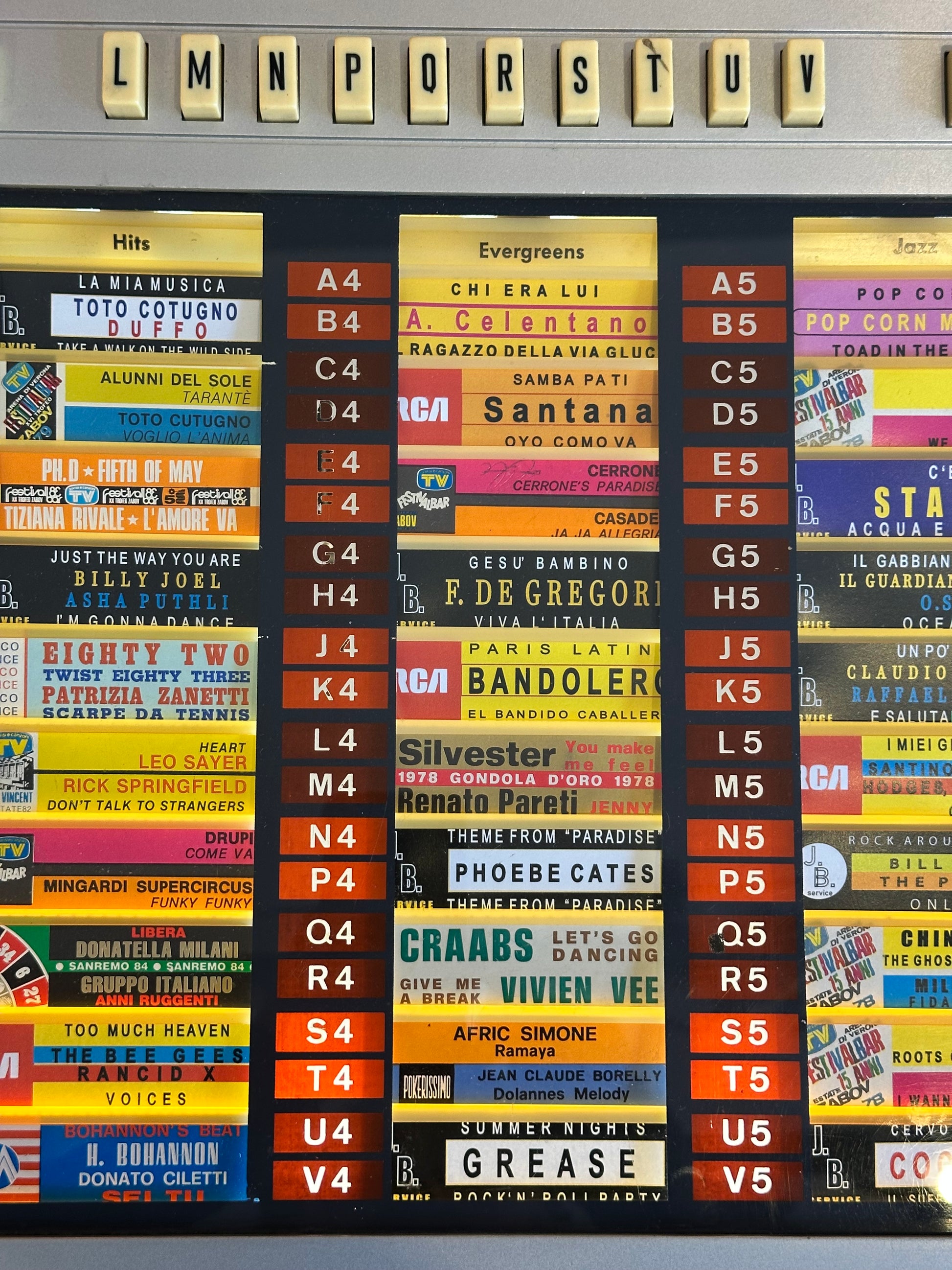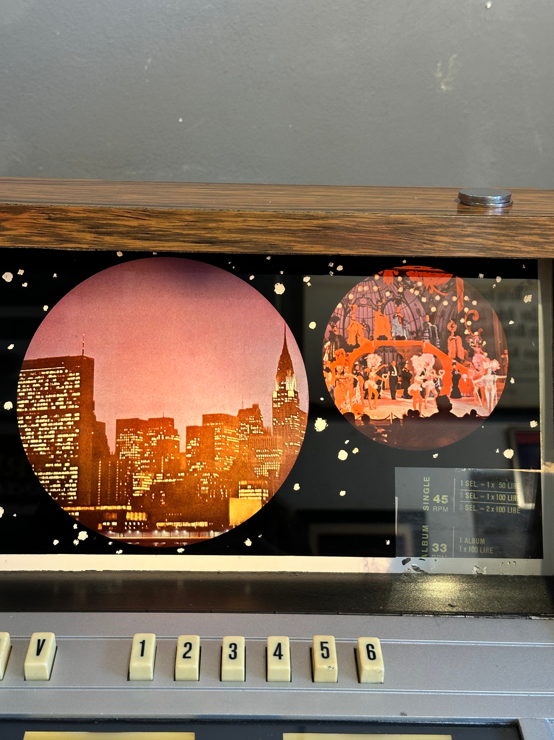 Condizioni: Completamente revisionato e funzionante a monete di 100 lire. 60 dischi di selezione.