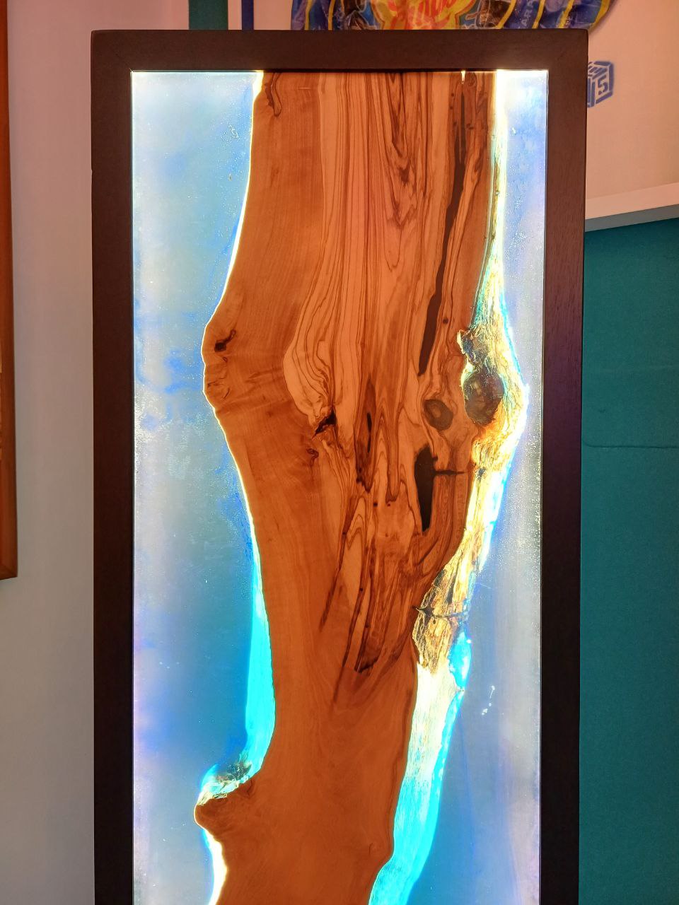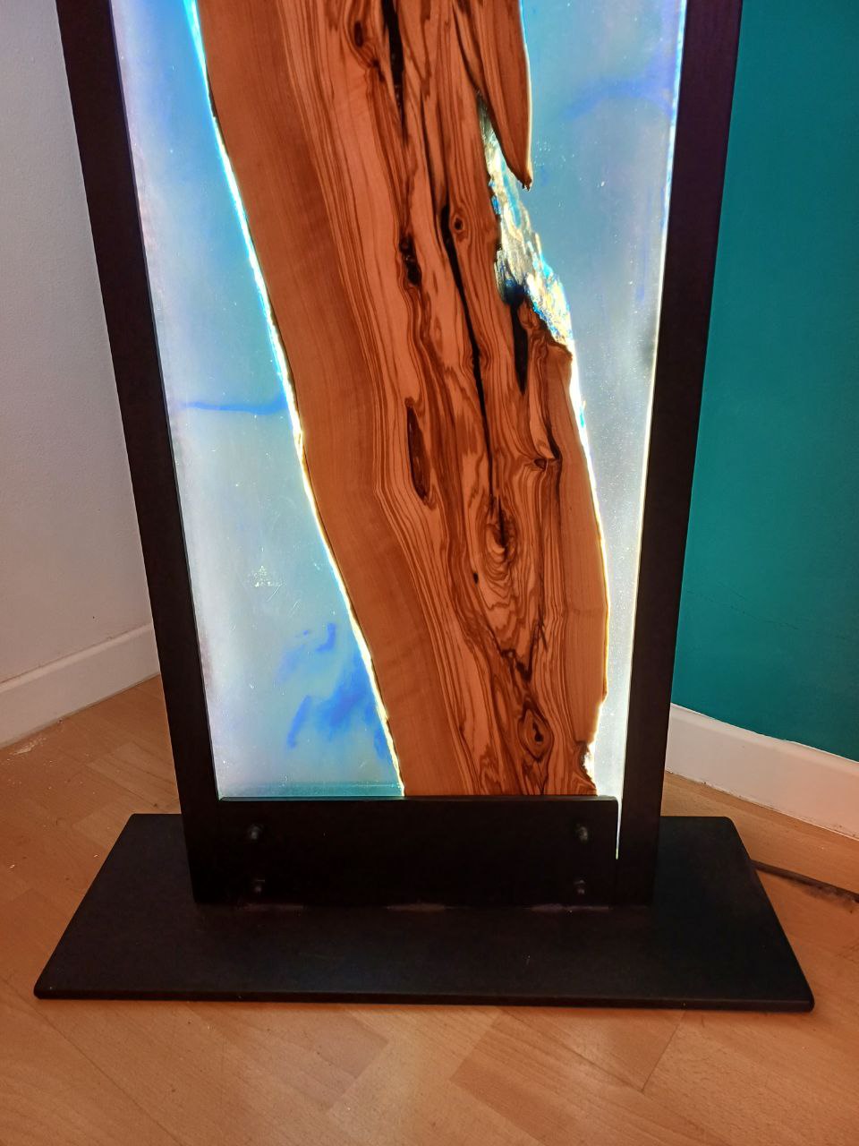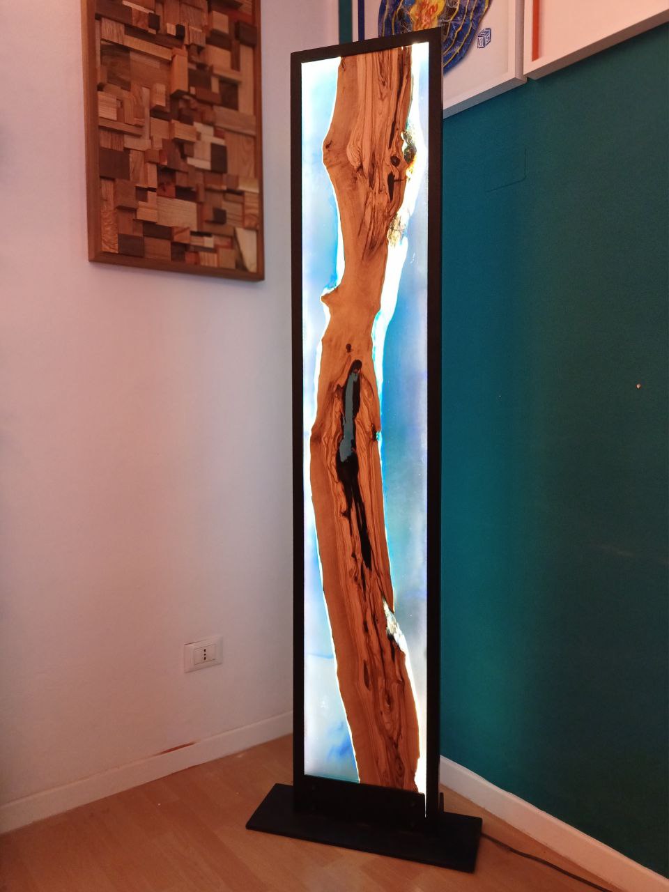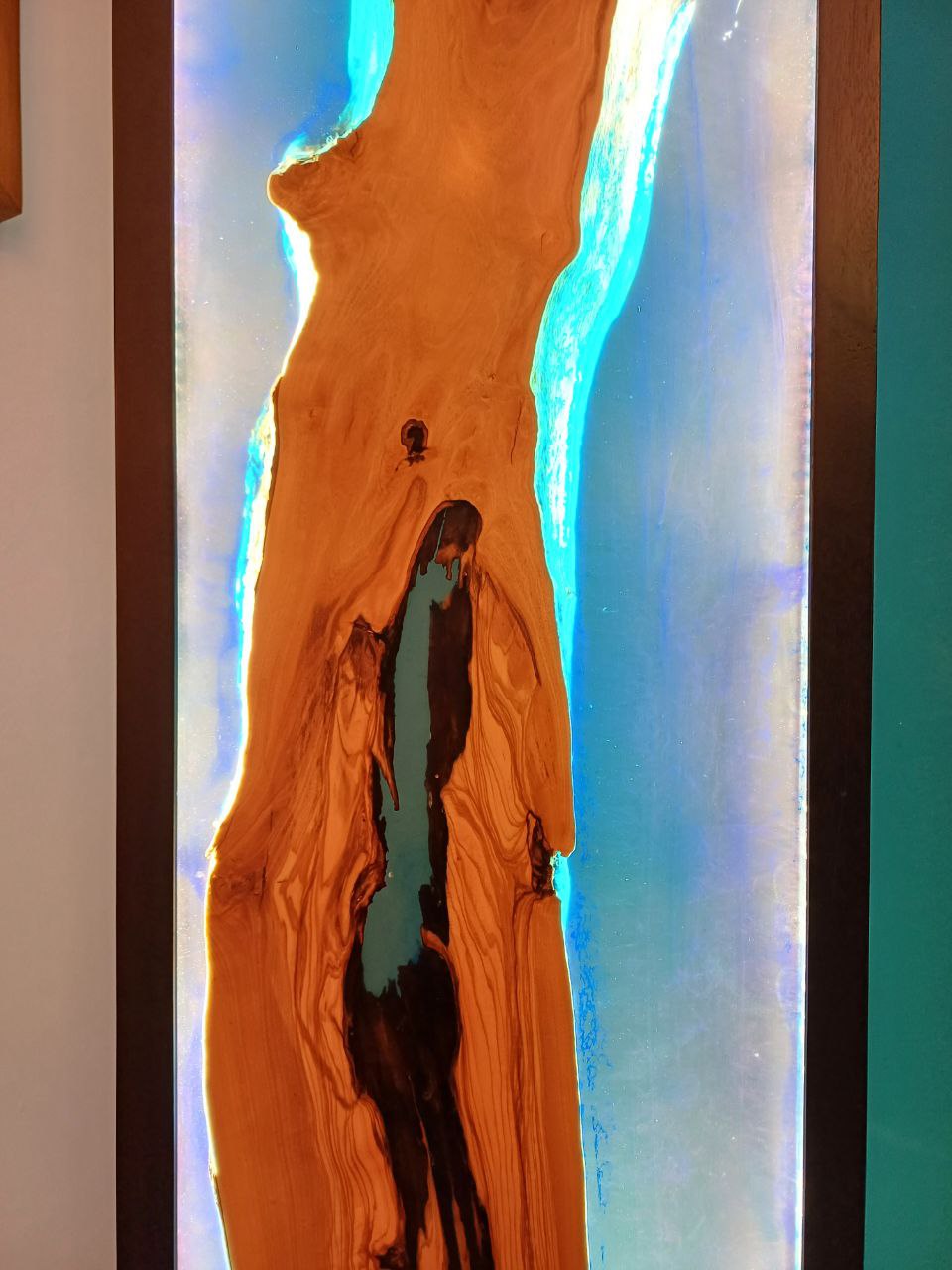 Materiale: Legno massello di ulivo secolare immerso in mare di resina effetto acqua marina